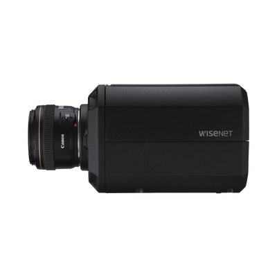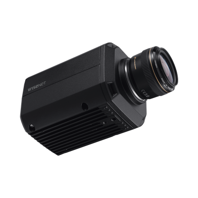 La cámara H.265 Wisenet TNB-9000, utiliza un sensor CMOS de tamaño completo de 43,3 mm para capturar imágenes de 8K verdaderas a 15 imágenes por segundo. Tiene analítica de vídeo basada en Deep Learning: esto permite detectar y clasificar simultáneamente varios tipos de objetos, entre ellos personas, vehículos, caras y matrículas..