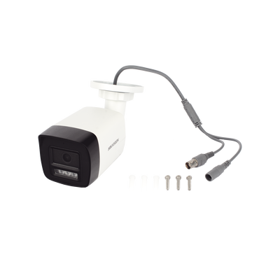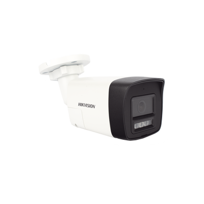 - La cámara cuenta con un micrófono y bocina interconstruido, el cual no requiere cables adicionales para poder transmitir el audio y video. Podemos tener una comunicación bidireccional desde la App (Hik-Connect) usando el DVR de por medio para la interconexión.