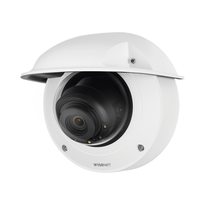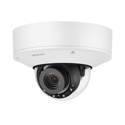 La Cámara IP Domo Exterior Antivandálica 5MP XNV-8081RE de Hanwha Techwin Wisenet ofrece una resolución máxima de 5MP@30IPS, lente motorizado de 3.9-9.4 mm, y protección IP67 para exteriores. Incorpora tecnología de compresión H.265 y WiseStream II, además de un amplio rango dinámico. Ideal para videovigilancia.
