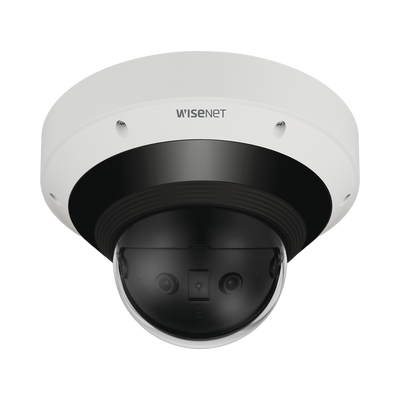 Cámara IP PNM-9031RV 15MP 220° IR 20m Dual stream de Hanwha Techwin Wisenet, ideal para videovigilancia. Con compresión H.265, resolución máxima de 15MP, visión panorámica de 220° o 180°, y distancia de IR de 20m. Brinda versatilidad en la monitoreo sin comprometer la calidad de imagen.