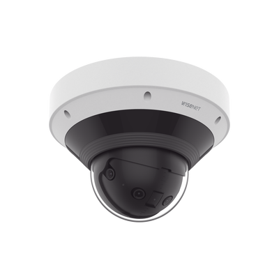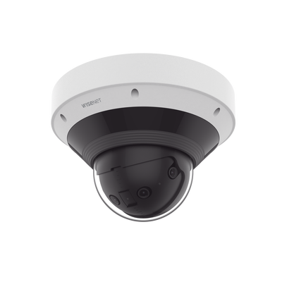 Cámara IP PNM-C9022RV 8MP 180° IP66 IK10 detección de movimiento reducción de almacenamiento. Con 4 lentes, resolución máxima de 8MP y compresión H.265, esta cámara es ideal para vigilancia exterior gracias a su ángulo de visión de 180° y su robusto diseño antivandálico.