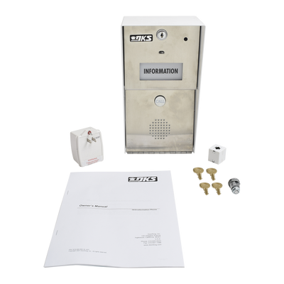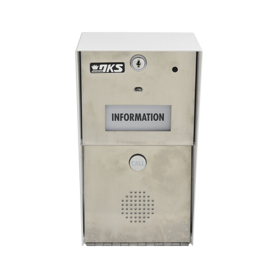 El modelo 1819 es una estacion para informacion que sirve para establecer comunicacion entre un visitante y un centro de control o caseta de guardias.