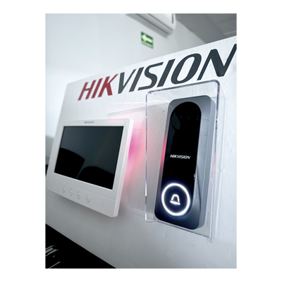 Kit de videoportero DS-KIS212 Pantalla LCD 7 pulgadas 720p 130° de visión Pantalla a color de alta calidad. Este videoportero cuenta con un monitor de 7%22 a color, resolución 1024 x 600, micrófono y altavoz interconstruidos, y es completamente compatible con el frente de calle TurboHD DS-KB2412T-IM. Su instalación es sencilla a 4 hilos y está diseñado para operar en un rango de temperatura de -10° a 55° C. Ideal para la comunicación en la entrada de su hogar u oficina.