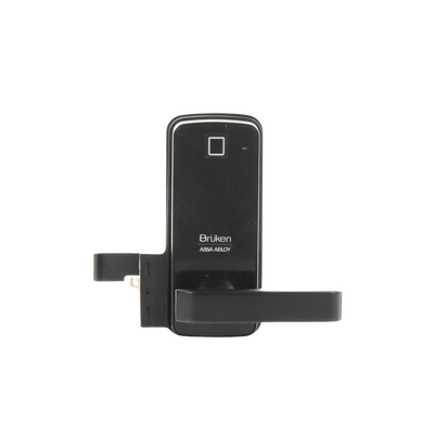 Cerrojo electrónico BRK3551 de la marca BRUKEN ASSA ABLOY. Este teclado digital con sensor óptico ofrece un voltaje de 6 V, utiliza 4 baterías AA (no incluidas), tiene un bajo consumo de menor a 200 mA y permite la gestión de hasta 99 usuarios con acceso mediante tarjeta y huella. Ideal para puertas de hasta 12 mm de espesor.