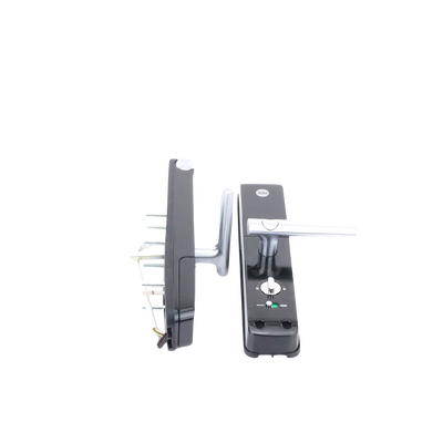 Cerradura autónoma YMF40A de YALE con teclado y biometría. Permite registrar hasta 100 usuarios por huella digital y código PIN. Compatible con puertas de 35 a 90 mm. Dispone de cierre automático por sensor y incluye 2 llaves de alta seguridad.