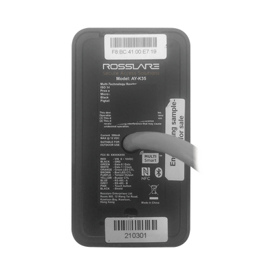 Lector multitecnologías AYK35 de ROSSLARE SECURITY PRODUCTS. Con un rango de lectura de 5-8 cm, este lector es compatible con tarjetas de 125 KHz (EM y HID) y 13.56 MHz (Mifare Classic). Su salida Wiegand de 26 bits permite fácil integración en sistemas de acceso. Es ideal para interior y exterior, y permite la lectura de tarjetas móviles a través de Bluetooth, facilitando un acceso seguro.