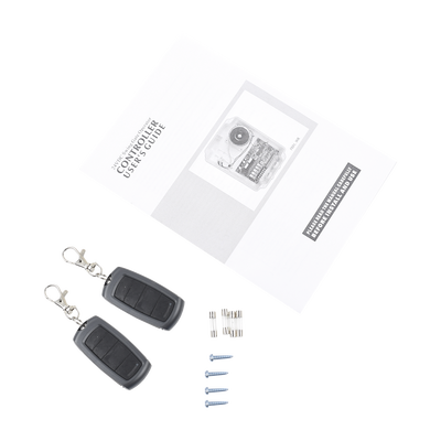 Cuadro de mando XBS-PK-CBOX compatible con motor para puerta abatible XBSPK06SI, incluye dos controles XBT23. Diseñado específicamente para motores de puertas abatibles, es sencillo de instalar y utilizar, facilitando la apertura y cierre sin salir del vehículo.