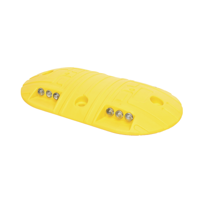 La Boya amarilla AC22-12BY 22cm x 12cm x 2.5cm, es un dispositivo de señalización fabricado en plástico duradero. Con 4 orificios para fijación al suelo, superficie antiderrapante y capacidad de carga de 20 toneladas, mejora la seguridad vial al delimitar carriles y controlar flujos de manera efectiva en condiciones adversas.