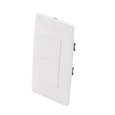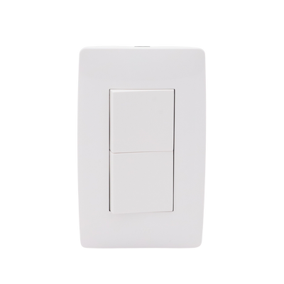Apagador dúplex JTL-C7305 10 A 127 V 11.8 x 7.8 x 3 cm Placa de plástico alta durabilidad diseño discreto. Ideal para instalación en muros interiores, color blanco semi brillante y facilita el control de la iluminación en diferentes espacios.