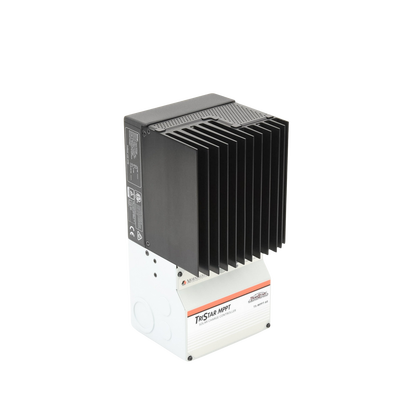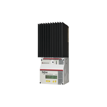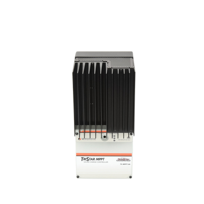 Controlador de carga MPPT TS-MPPT-60M 60A 12/24/36/48V 150VCC 99%25 rendimiento pico sin ventiladores. Este controlador ofrece un voltaje nominal del sistema de 12 a 48 Vcc, un voltaje máximo a circuito abierto de 150 Vcc y operatividad en temperaturas de -40 a 45 °C. Características como la detección de potencia pico y la protección contra cortocircuito, junto con el beneficio de la optimización del uso de energía solar, lo hacen ideal para aplicaciones fotovoltaicas.