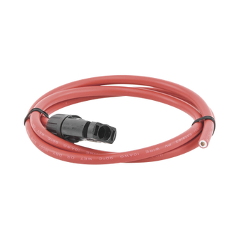 Cable fotovoltaico CBLMC41MRED 1 m rojo 10 AWG conector MC4-M alta calidad aislante resistente. Este cable fotovoltaico de 1 m se caracteriza por su color rojo, calibre 10 AWG y un conector MC4-M en un extremo. Diseñado para aplicaciones fotovoltaicas, ofrece una conexión eficiente y segura entre módulos solares y controladores de carga.