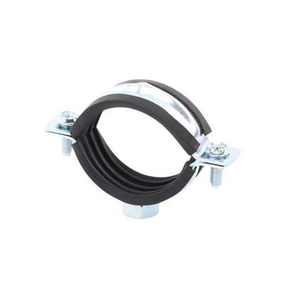 Abrazadera isofónica AB-RIP-040 cincado electrolítico 1.75 mm de espesor temperatura de trabajo -30ºC a +120ºC isofónica goma de EPDM para aislamiento. Ideal para tubos de acero y plástico, cuenta con un acabado de cincado electrolítico, tuerca soldada de 3/8\%27\%27, carga máxima de 150 kg y un diámetro interno de 1 1/4%22. Su diseño reduce el sonido y las vibraciones, mejorando el aislamiento acústico en instalaciones.