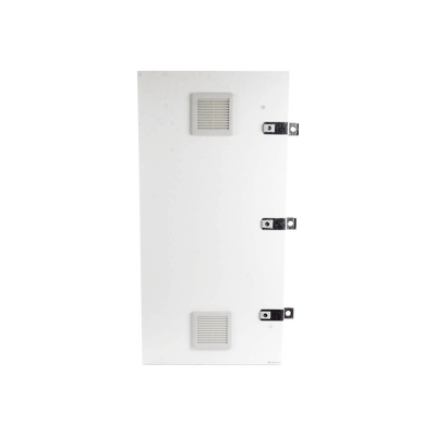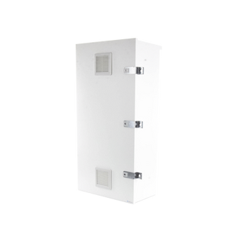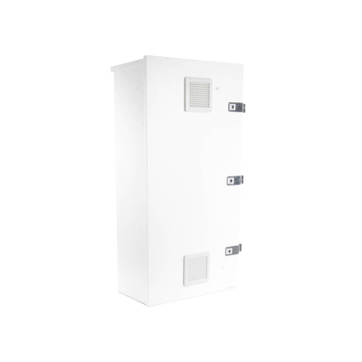 Gabinete exterior EI-PCB-04-11-03-W3V de acero galvanizado, dimensiones de 586 x 1081 x 311 mm y peso de 24.49 kg. Fabricado en lámina de acero galvanizado, cuenta con una pintura electrostática resistente a la intemperie. Ideal para montajes en poste o piso, diseñado para aplicaciones exteriores, especialmente en sistemas de energía solar autónomos, gracias a su puerta ventilada que favorece el flujo de aire.