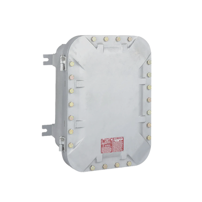 Gabinete antiexplosivo HUB-EXB-16248-N34 de 16x24x8in, fabricado en aluminio fundido, ideal para áreas peligrosas. Color gris, con clasificaciones NEMA 3, 4, 4X, y un diseño que minimiza pernos en la cubierta. Cuenta con un anillo de nitrilo que evita filtraciones de agua, además de argollas de montaje para superficies irregulares.