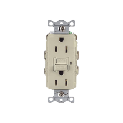 Contacto de auto-verificación GFCI HUB-GFR-15I 15 a 125 V 3 hilos color marfil diseñado para servicio pesado cumple con estándar NEMA 5-15R