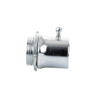 Conector 1 1/2%22 JU-PD-112-CON galvanizado interior, ideal para conexiones eléctricas. Cuenta con diseño resistente a la corrosión, tornillo incluido, diámetro de 1 1/2%22, y es apto para ambientes interiores con humedad menor al 40%25. No adecuado para subterráneo.