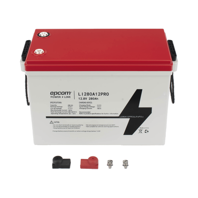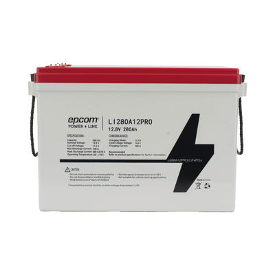 Batería de litio LI280A12PRO 12.8 Vcc 280 Ah 6000 ciclos de alta capacidad de descarga, con voltaje de corte de 11.2 Vcc y corriente de descarga máxima de 140 A. Diseñada para soportar temperaturas de -20 °C a 60 °C, es ideal para sistemas de energía solar y almacenamiento de energía. Requiere controlador de carga EPEVER Serie XTRA-XXXX-N o TRACER-XXXX-AN para un rendimiento óptimo, garantizando una operación segura y eficiente.