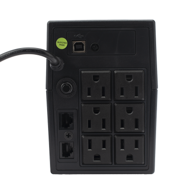 UPS 600VA LP600LCD 360W onda senoidal simulada cuenta con 6 salidas NEMA 5-15R (4 respaldadas) para garantizar la continuidad eléctrica. Con su capacidad de 600 VA/360 W y regulación de voltaje, protege equipos electrónicos sensibles. Ideal para pequeñas y medianas empresas, ofrece alarma de estado y una instalación simple.