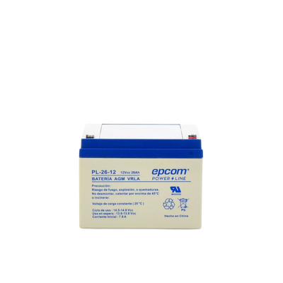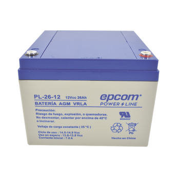 La serie de baterías EPCOM POWERLINE, están diseñadas con tecnología AGM-VRLA ( Fibra de vidrio absorbente, con válvulas de regulación), placas de alto rendimiento y electrólito para proporcionar una salida de energía adicional. Las baterías de la serie EPCOM POWERLINE son baterías de respaldo para equipos electrónicos, con una vida útil de diseño flotante de 5 años a 25°C. , aprobado por UL ( MH64542 ).