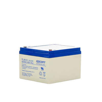 Batería 12 Vcc PL-26-12 26 Ah M5 Sellado libre de mantenimiento certificado UL, diseñada para aplicaciones de alta confiabilidad. Con un voltaje de 12 Vcc, capacidad de 26 Ah, y terminales tipo M5, esta batería AGM-VRLA es ideal para sistemas de seguridad, proporcionando una salida de energía adicional y requiere mantenimiento mínimo.