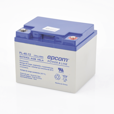 La serie de baterías EPCOM POWERLINE, están diseñadas con tecnología AGM-VRLA ( Fibra de vidrio absorbente, con válvulas de regulación), placas de alto rendimiento y electrólito para proporcionar una salida de energía adicional. Las baterías de la serie EPCOM POWERLINE son baterías de respaldo para equipos electrónicos, con una vida útil de diseño flotante de 5 años a 25°C. , aprobado por UL ( MH64542 ).