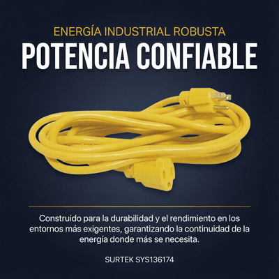 Extensión eléctrica SYS-136174 15 metros 10 A 127 Vca con recubrimiento aislante de PVC. Fabricada con material conductor CCA y cumple con NOM 003-SCFI-2014. Con su longitud de 15 metros y 3 patas en la clavija, es ideal para el uso doméstico, garantizando seguridad y eficiencia en la conexión de dispositivos eléctricos.