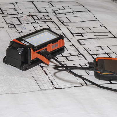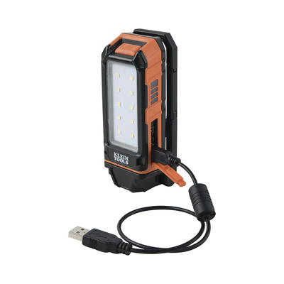 Lámpara de trabajo personal 56-403 de KLEIN TOOLS, ideal para seguridad y tareas laborales. Con unas dimensiones compactas de 2.07%22 x 5.11%22 (53 x 130 mm), esta lámpara ligera (0.22 kg) ofrece 460 lúmenes en modo alto y 175 lúmenes en modo bajo. Recargable mediante micro-USB, su diseño multifuncional incluye una base magnética y es resistente a caídas hasta 6\%27. Perfecta para iluminar trabajos en ambientes oscuros y para cargar smartphones al mismo tiempo.