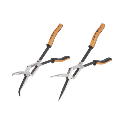 Juego de pinzas 71402 de Klein Tools con longitud total de 13,23\%27\%27 (33,6 cm) fabricadas en acero. Con mordazas de 3,15\%27\%27 (8,1 cm), grosor de 0,39\%27\%27 (1 cm) y capacidad de 2\%27\%27 (5,1 cm). Diseño de doble remache para un mejor acceso en espacios reducidos y agarre superior, ideales para diversas tareas.