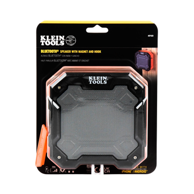 Bocina portátil AEPJS3 de KLEIN TOOLS, con 20 horas de batería, resistente IP54 y Bluetooth. Diseño robusto con micrófono para manos libres y sonido potente, ideal para trabajo y actividades al aire libre.