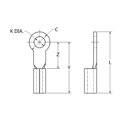 Zapata terminal de ojillo HUB-T14-10 para tornillo 3/16 in cable 16-14 AWG tipo barril largo material cobre. Ideal para aplicaciones de cableado de control, esta conexión de alta calidad es compatible con conductores de 16-14 AWG y cuenta con un diámetro máximo de aislamiento de 0.080 in. Cumple con las normativas RoHS de la UE y ofrece una instalación fácil gracias a su diseño de terminal de ojo, asegurando conductividad óptima gracias a su construcción de cobre.