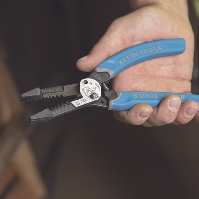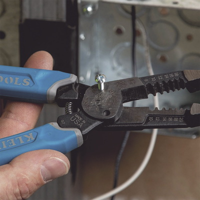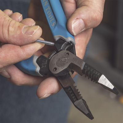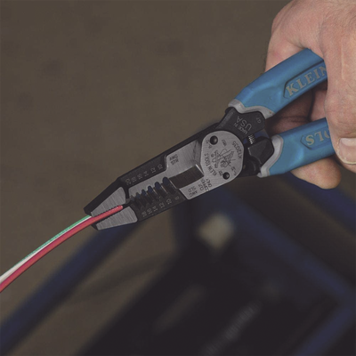 El Pelacables K120-35 de KLEIN TOOLS es una herramienta esencial para electricistas. Compatible con cables sólidos de 8 a 18 AWG y trenzados de 10 a 20 AWG, mide 8.41%22 y pesa 272 g. Cuenta con una punta moleteada para jalar alambre y cuchillas de cizalla para cortar materiales gruesos, reduciendo la fatiga en uso prolongado.