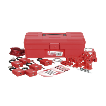 Kit de bloqueo loto PSL-KT-CONA 6 candados rojos 3 bloqueadores de enchufe 15 etiquetas de seguridad diseño compacto