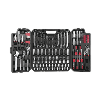 - Este juego de herramientas mecánicas es una selección versatil con 3 manerales, una excelente variedad de dados, extensiones, llaves combinadas, llave ajustable, llaves hexagonales, pinzas uso eléctrico y más.