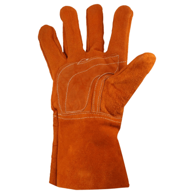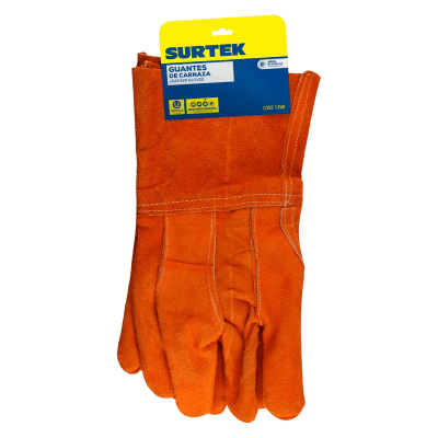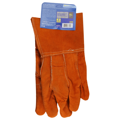 Guantes de carnaza SYS-GCAL material carnaza puño largo 12.5 cm talla unitalla refuerzo en la palma altas temperaturas