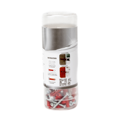 | Incluye | 30 taquetes rojos de 1/4", 30 tornillos de 10 x 1 1/2", 1 broca de 1/4". |