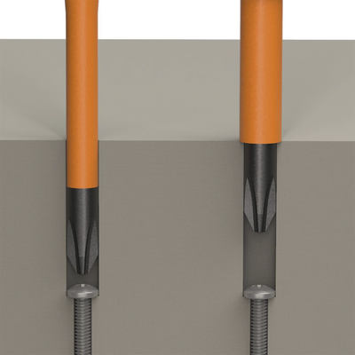 - Juego de desarmadores que incluye estos tamaños de punta: 2 puntas Phillips n.º 2, 2 puntas ranuradas de 1/4'', 1 punta Phillips n.º 1, 1 punta cuadrada n.º 1, 1 punta cuadrada n.º 2 y 1 punta ranurada de 3/16''.