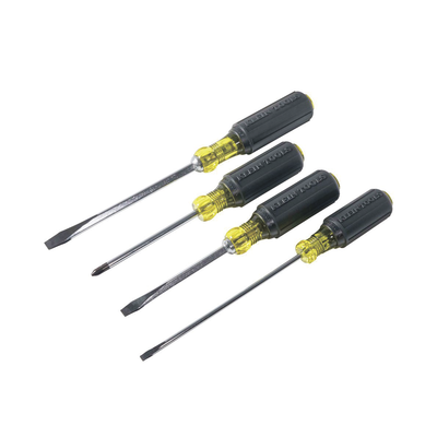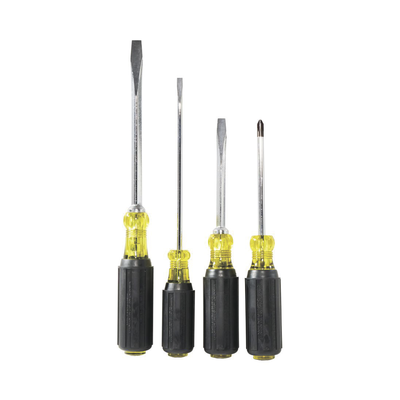 Juego de desarmadores 85105 de KLEIN TOOLS, ideal para trabajos de bricolaje. Incluye 4 piezas: 603-4, 600-4, 601-6, 600-6. Con sistema Tip-Ident® para identificación rápida y mango acojinado para mayor comodidad. Peso: 0.7 kg (1.5 lb).