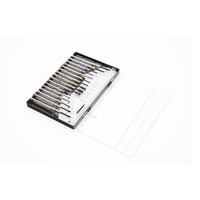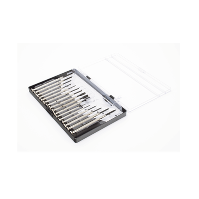 Juego de desarmadores EP16 set de 16 piezas, ideal para trabajos eléctricos y de precisión. Incluye estuche de plástico rígido que facilita el almacenamiento. Medidas: (+) %231-1, (+) %231-2, (+) %230, (+) %230-2, 1.5 m/m hasta 5.0 m/m y (-) 1.0 m/m hasta (-) 3.5 m/m. Su diseño compacto brinda fácil transporte y organización.