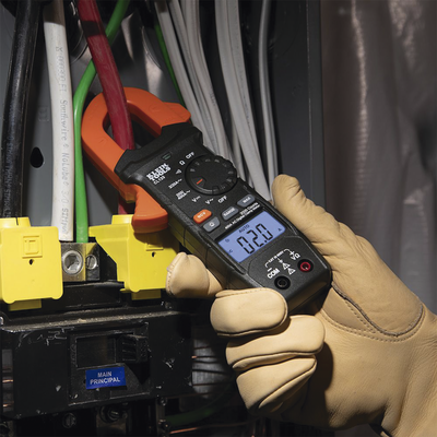 El Amperímetro Digital de Gancho CL-120 de KLEIN TOOLS es un multímetro de gancho que mide corriente CA y CC, adecuado para trabajos en electricistas. Con un rango automático de 400 A CA, su material ABS garantiza durabilidad, mientras que su LCD retroiluminada facilita la visualización en condiciones de poca luz. Además, cuenta con apagado automático para prolongar la vida de las 3 baterías AAA. Sus mordazas de 1.6%22 (41 mm) permiten un uso cómodo y seguro.