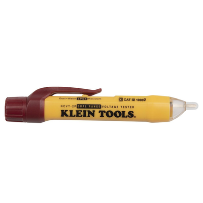 Detector de voltaje sin contacto NCVT-2P de KLEIN TOOLS, ideal para pruebas de voltaje CA en doble rango de 12 a 1000 V. Con protección IP54 y función de apagado automático, ofrece seguridad y comodidad. Incluye indicadores visuales y audibles, y una protección anti caídas de hasta 2 m.