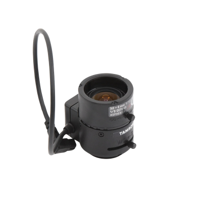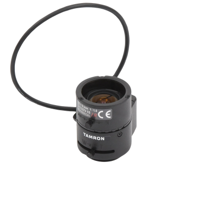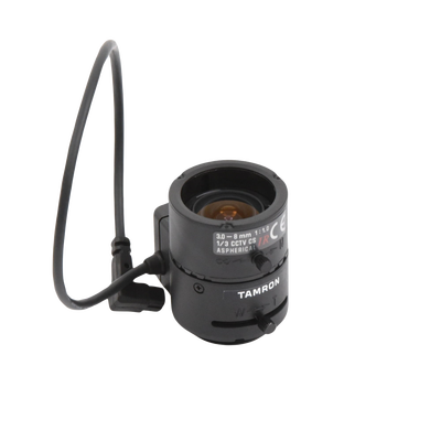 Lente Varifocal 3-8mm 13VG308ASIRII de TAMRON. Distancia focal versátil de 3-8mm y apertura máxima de 1.0-360. Cuenta con control de luz automático IRIS AUT/DC y modo día/noche para visibilidad óptima. Diseño asférico que mejora la calidad de imagen, con ángulo horizontal ajustable de 27-90.8 grados.