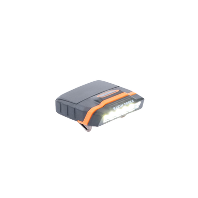 Lámpara LED 56402 de KLEIN TOOLS, con 5 LEDs y brillo de 125 lúmenes (alto) y 40 lúmenes (bajo). Incluye clip de metal moldeado para ajustarse a gorras y casco. Resistente al agua y al polvo (IP54).