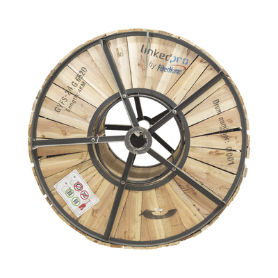 Carrete de fibra óptica GYFS-24C/4KM 24 hilos monomodo G.652D a prueba de humedad, ideal para instalaciones subterráneas. Cuenta con armadura metálica, cubierta en HDPE resistente a temperaturas de -20ºC a +65ºC, y máxima tensión de 2200N, asegurando conectividad de alta velocidad.
