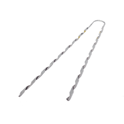 Remate preformado GDE-1104 acero galvanizado 4233 kg 635 mm pierna dispareja agarre uniforme. Fabricado en acero galvanizado, adecuado para tensión de hasta 4233 kg, y diseñado específicamente para cables de fibra óptica con mensajero de 1/4%22 y Φ 6.3 mm. Con su pierna dispareja, facilita la instalación y proporciona un agarre uniforme que protege la fibra óptica.