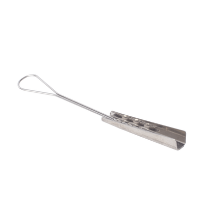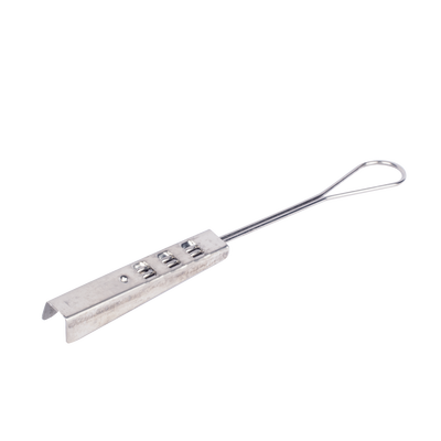 Remate tipo grapa LP-RGCDP, fabricado en acero inoxidable, con tensión máxima de > 600N. Su dureza mínima es HB > 165 y extensión > 60%25. Acepta cables con ancho <= 8 mm y espesor <= 3 mm. Instalación fácil y compacta, ideal para condiciones exigentes.