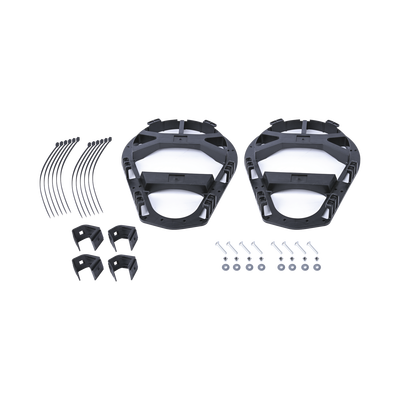 Incluye 1 par de raquetas, 12 cinchos de plástico, 4 sujetadores de fibra, 8 tornillos con tuerca