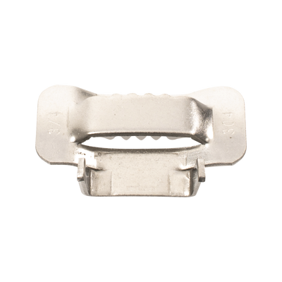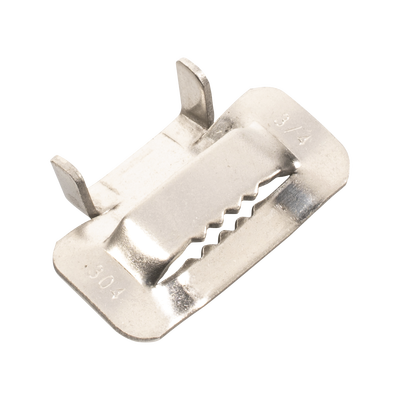 Hebilla de Acero Inoxidable LP-SSBT-34, 3/4%22, fabricadas en acero inoxidable 304. Incluye 100 piezas resistentes a la corrosión. Ideal para aplicaciones en fibra óptica y sistemas de cableado.