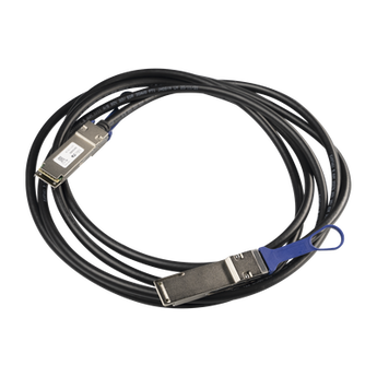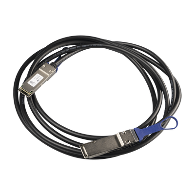 Cable de conexión directa XQ+DA0003 de 3 m con módulos QSFP28 integrados. Conector QSFP+ a QSFP+ / QSFP28 a QSFP28 y velocidad de datos de 40 G / 100 G. Esta versión ofrece un cable flexible, ideal para una fácil instalación y mantener la organización en la sala de servidores.