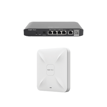 Equipo de red RG-DEMO-EG-W5, que incluye 1 router RG-EG105GPV3 y 1 access point RG-RAP2200(E). Este sistema proporciona alta disponibilidad, redundancia y balanceo de carga. Ideal para oficinas y hoteles, asegura la segmentación de datos sensibles y optimiza la calidad de comunicaciones como VoIP y videovigilancia.