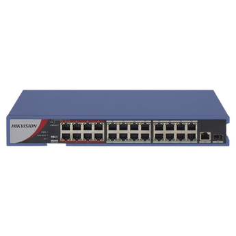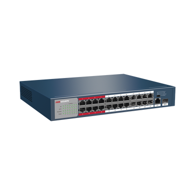 Switch Poe+ DS-3E0326P-E/M(B) 24 puertos 10/100 mbps 1 puerto 1000 mbps modo extendido hasta 300 m protege contra sobretensión modo hi-poe